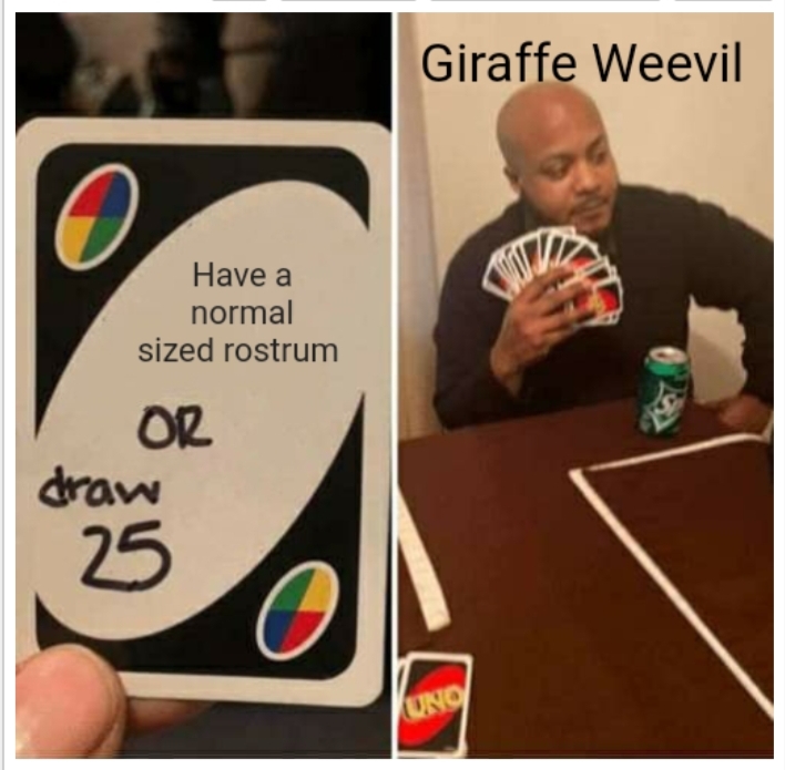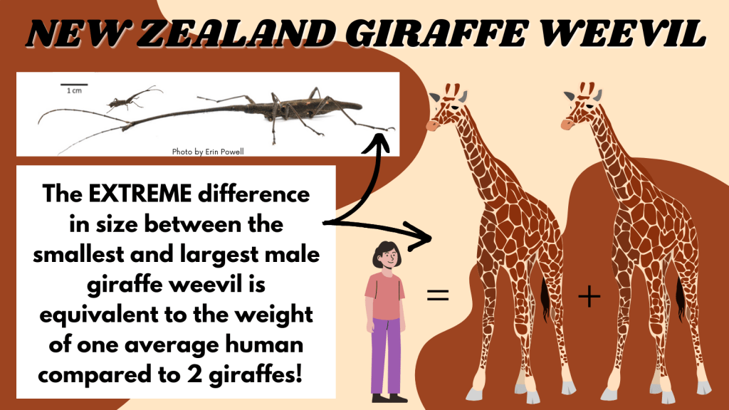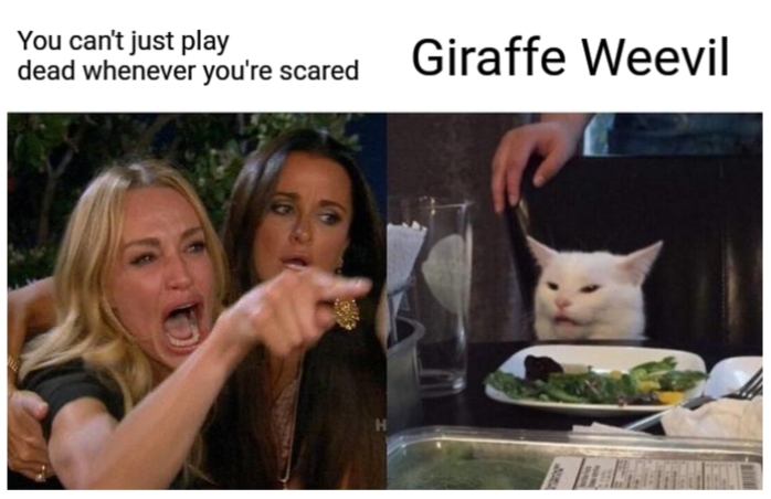 This year there are 24 nominees all vying for the prestigious title of NZ Bug of the Year. However, there is one insect we here at the Invertebrate Behavioural Ecology Lab favour above all the other nominees: the one and only New Zealand giraffe weevil (tuwhaipapa, Lasiorhynchus barbicornis). I mean only someone very odd would not vote for the weirdly cute giraffe weevil and that honour goes to our resident spider nerd and PhD candidate Simon Connolly. So that means everyone else will just have to vote #TeamGiraffeWeevil.