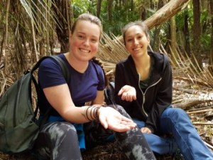 Sarah (left) was a MSc student at the University of Auckland working on characterising sperm competition and polyandry in the New Zealand giraffe weevil using a combination of field based observations and microsatellite genotyping. Nicole (right) was a MSc student at the University of Auckland researching geographic variation in sexual selection and the role of heat loss in driving variation in rostrum investment in the New Zealand giraffe weevil.